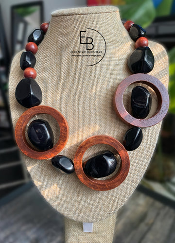 “Round In Circles” -Earth Tone Vintage Wood Necklace