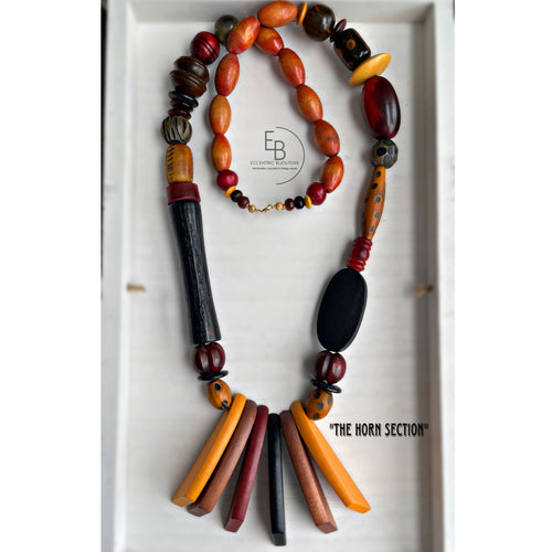 “The Horn Section” Long Wood & Horn Abstract Necklace