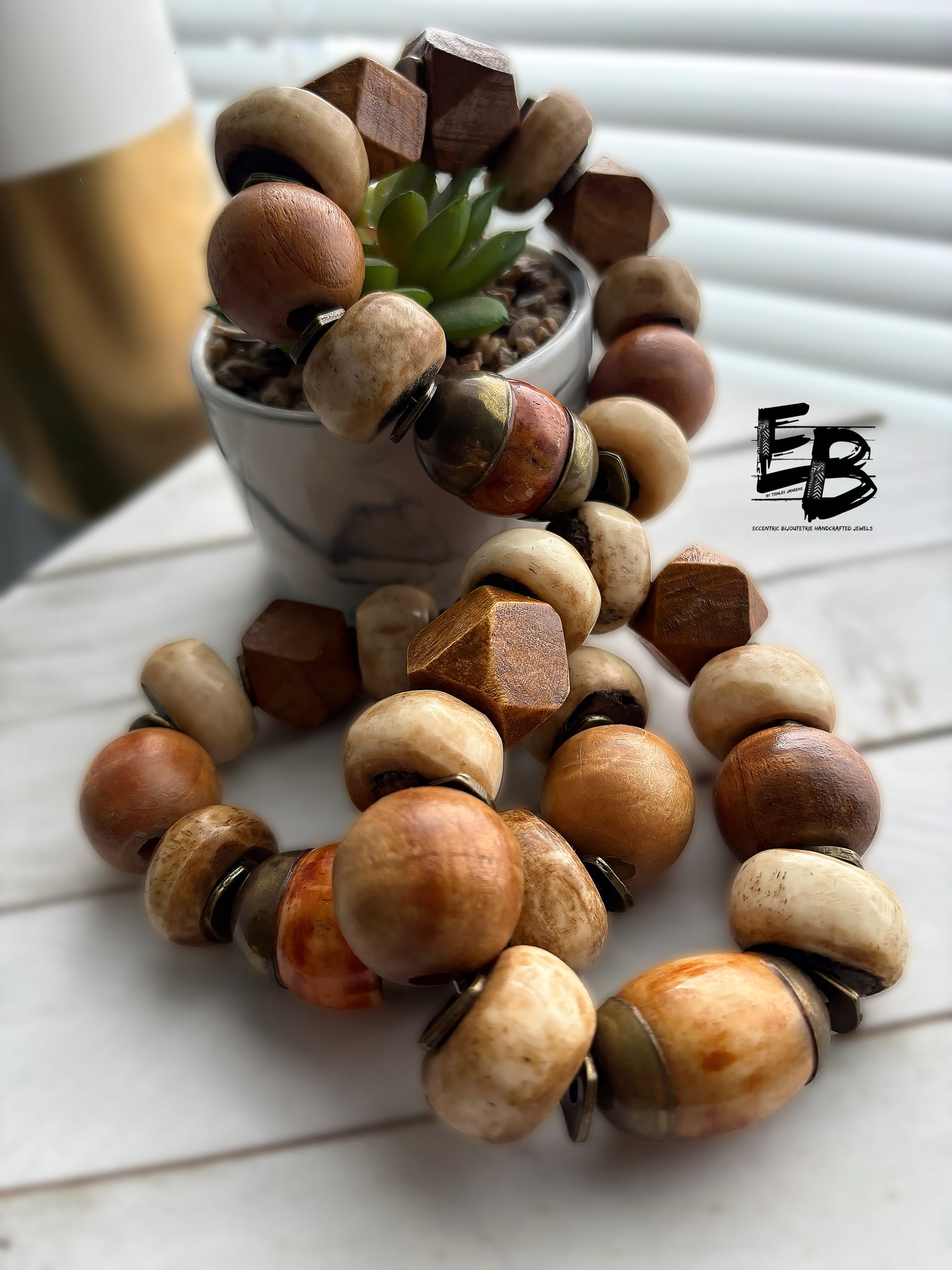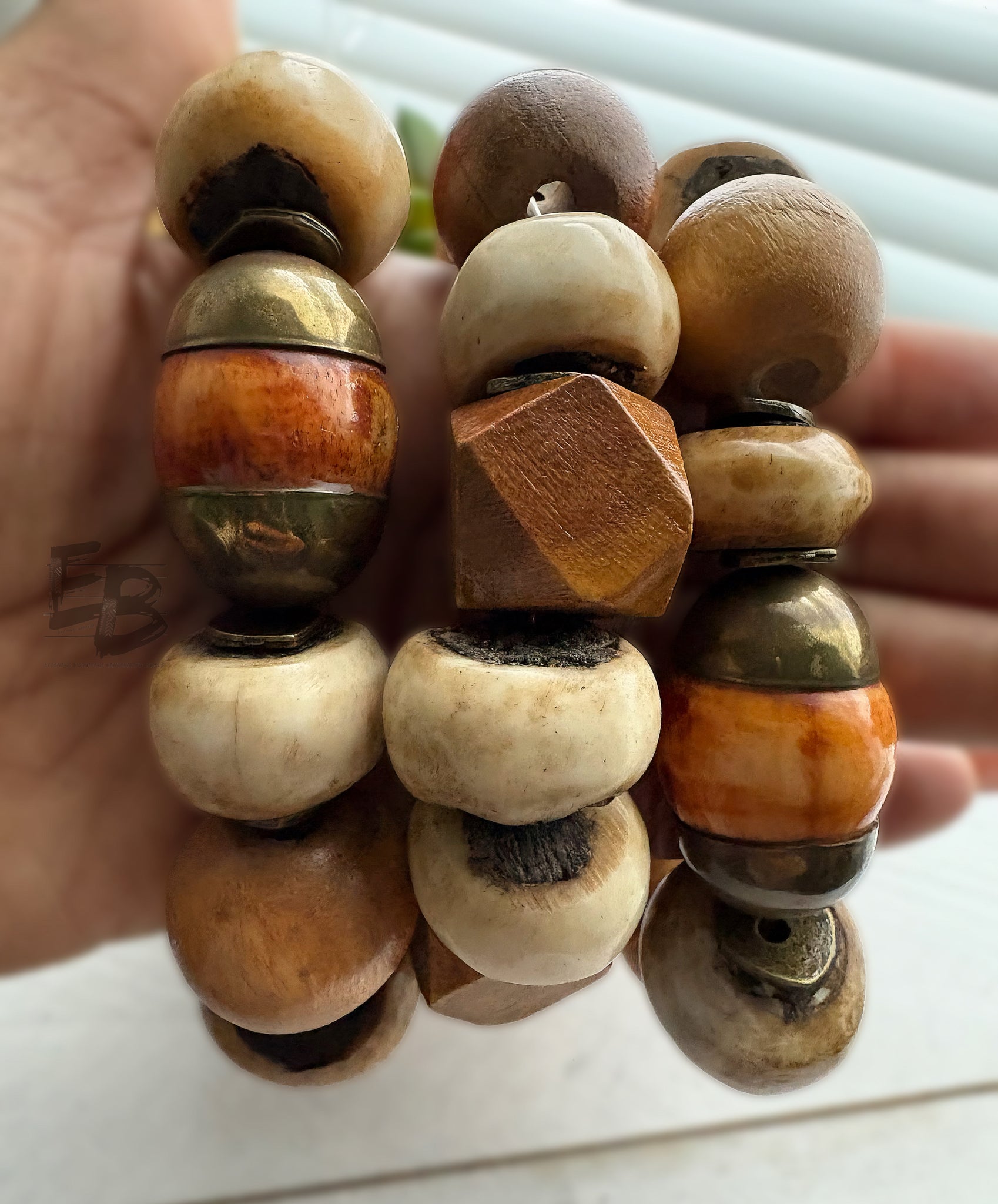 This "Rustic Brass" chunky stretch bracelet is a stunning unisex piece that combines authentic bone beads with African brass accents. Its unique design makes it the perfect accessory to make a bold statement.