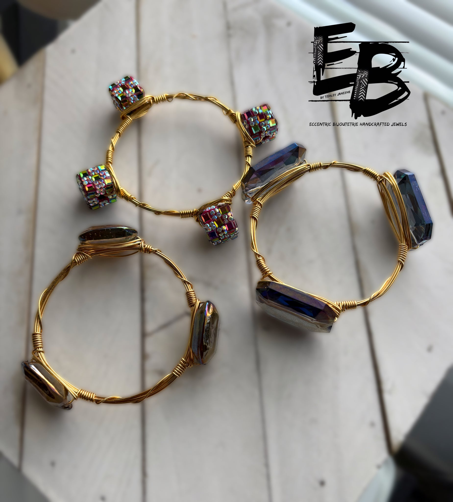 Transform your outfit with "The Shimmer Stack". This handmade three-piece bangle stack features 2 stunning faceted glass bead bangles and one beautifully adorned glass encrusted square bead bangle. Dress it up for a night out or down for a casual day look. Available in three size options on tarnish-resistant brass wire for long-lasting elegance.